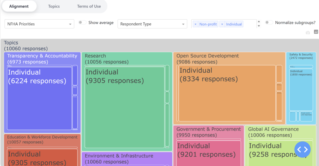 The tool was developed in response to the OSTP’s Request for Information on the Development of an Artificial Intelligence (AI) Action Plan, where over 10,000 organizations and individuals submitted comments that will shape the nation’s approach to AI governance. AACT helps policymakers, advocates, and housing and lending organizations visualize areas of agreement, identify emerging themes, and strengthen coalitions around a shared understanding of what constitutes responsible AI.